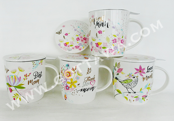 12oz new bone china mug with lid and infuser, 1set/gift box